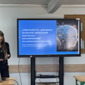 27 lutego 2026 r. uczniowie klasy 4 TŻH uczestniczyli w zajęciach realizowanych w ramach programu „Kurs na Odporność. Szkoła z Klasą”. Spotkanie poprowadziła pani Edyta Chomiaczewska, a jego tematem była „Neuroplastyczność w życiu ucznia”. Celem zajęć było przybliżenie młodzieży praktycznych zasad wzmacniania sieci neuronalnych oraz świadomego wspierania procesów uczenia się.