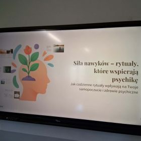 Dnia 22 kwietnia w klasie 1TŻ odbyła się lekcja wychowawcza w ramach programu „Kurs na odporność” Szkoły z klasą. Zajęcia poprowadziła pani Magdalena Rydz, a tematem zajęć była rola nawyków i codziennych rytuałów w dbaniu o zdrowie psychiczne.