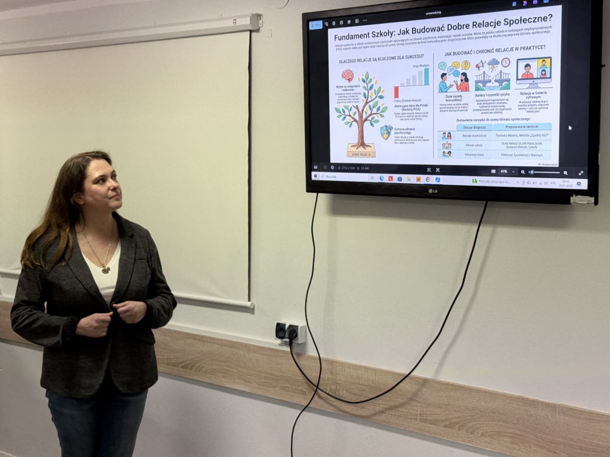 Podczas lekcji prowadząca zwróciła uwagę na znaczenie pozytywnych relacji pomiędzy uczniami w środowisku szkolnym oraz ich wpływ na poczucie bezpieczeństwa, współpracę i dobrostan młodzieży. Omówione zostały również czynniki sprzyjające budowaniu dobrych relacji, a także czynniki ryzyka, które mogą je osłabiać lub utrudniać.