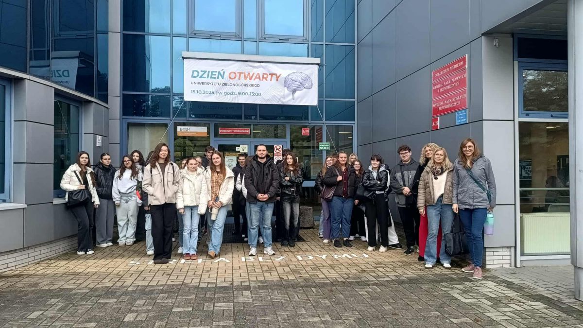 W dniu 15 października 2025 roku uczniowie klas 5PHS, 4TE i 5TE wraz z nauczycielkami Jolantą Mazur, Jolantą Płotnicką i Małgorzatą Dyr uczestniczyli w Dniu Otwartym Uniwersytetu Zielonogórskiego. Wydarzenie to było doskonałą okazją do zapoznania się z ofertą edukacyjną uczelni, a także do wzięcia udziału w licznych atrakcjach, które odbywały się na pięciu kondygnacjach głównego budynku uniwersytetu.