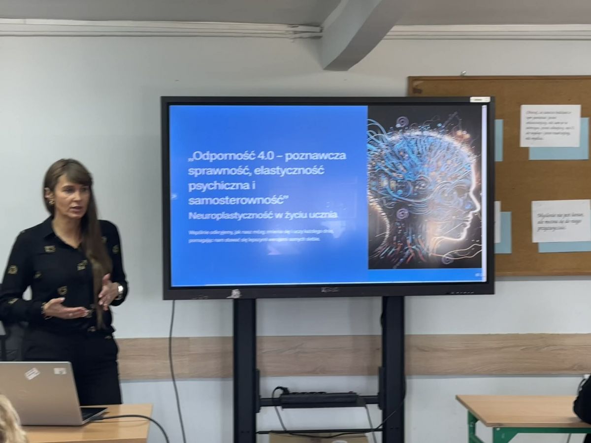 27 lutego 2026 r. uczniowie klasy 4 TŻH uczestniczyli w zajęciach realizowanych w ramach programu „Kurs na Odporność. Szkoła z Klasą”. Spotkanie poprowadziła pani Edyta Chomiaczewska, a jego tematem była „Neuroplastyczność w życiu ucznia”. Celem zajęć było przybliżenie młodzieży praktycznych zasad wzmacniania sieci neuronalnych oraz świadomego wspierania procesów uczenia się.