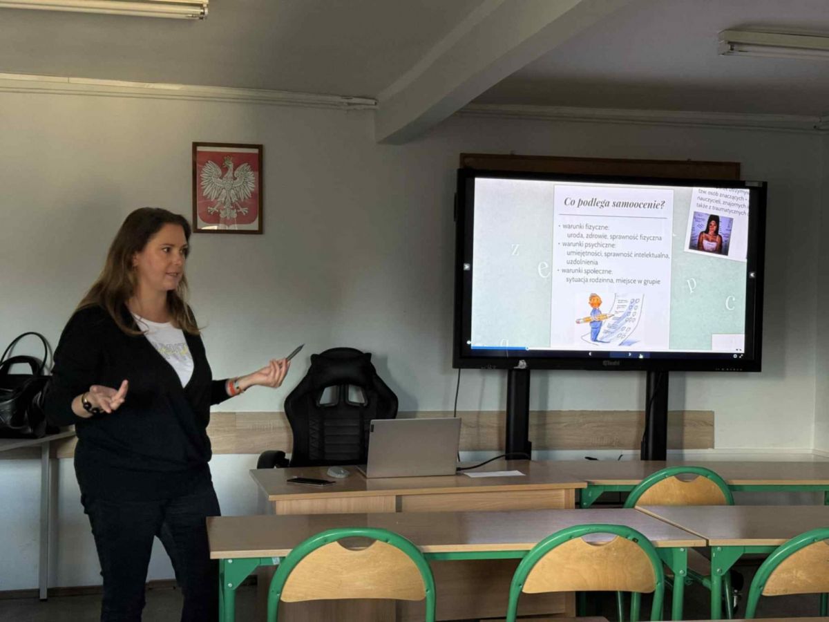 Podczas zajęć uczniowie dowiedzieli się, czym jest poczucie własnej wartości oraz jakie ma znaczenie w codziennym życiu - zarówno w relacjach z innymi ludźmi, jak i w podejmowaniu decyzji oraz realizacji własnych celów. Omówiono czynniki, które wpływają na budowanie pozytywnego obrazu samego siebie, a także te, które mogą obniżać samoocenę.