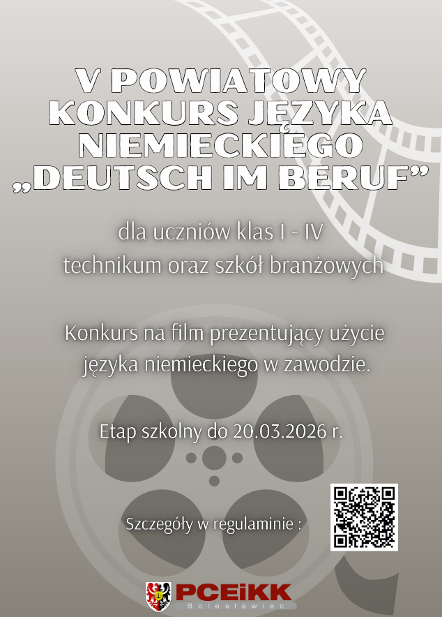 Zapraszamy uczniów klas I–IV technikum i szkół branżowych do udziału w konkursie, w którym możecie pokazać, jak język niemiecki wykorzystuje się w Waszym zawodzie. Wystarczy stworzyć krótki film (do 3 minut) w 3-osobowym zespole, w którym zaprezentujecie słownictwo i ciekawe informacje związane z Waszą branżą.