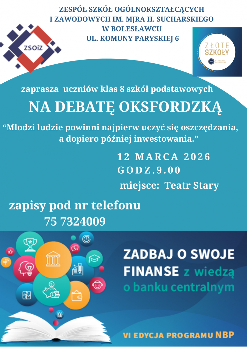Nazwa wydarzenia: Debata oksfordzka pod hasłem: „Zadbaj o swoje finanse z wiedzą o banku centralnym.”