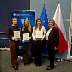 3 marca 2026 r. we Wrocławiu odbył się etap wojewódzki Ogólnopolskiej Olimpiady „Warto wiedzieć więcej o ubezpieczeniach społecznych”. W etapie szkolnym olimpiady w województwie dolnośląskim wzięło udział 1,9 tys. uczniów. Do etapu wojewódzkiego zakwalifikowało się tylko 69 uczniów, więc już samo uczestnictwo w tym etapie jest dużym sukcesem. Naszą szkołę, w etapie wojewódzkim reprezentowała drużyna w składzie: Weronika Klessa, Martyna Najdek, Oliwia Rapir z klasy 4TE....