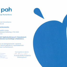 Dnia 2 kwietnia 2021 uczniowie Zespołu Szkół Ogólnokształcących i Zawodowych im. mjra Henryka Sucharskiego, solidaryzując się z osobami dotkniętymi chorobami ze spektrum autyzmu, wzięli udział w wydarzeniu eTwinning "World Autism Awareness Day / Światowym Dniu Świadomości Autyzmu", organizowanym przez Enkelejde Aliijaj z Albanii. Celem tego wydarzenia było podnoszenie świadomości społecznej i wspieranie osób z autyzmem. Zadaniem uczniów było stworzenie plakatu/ kolażu / zdjęcia /...