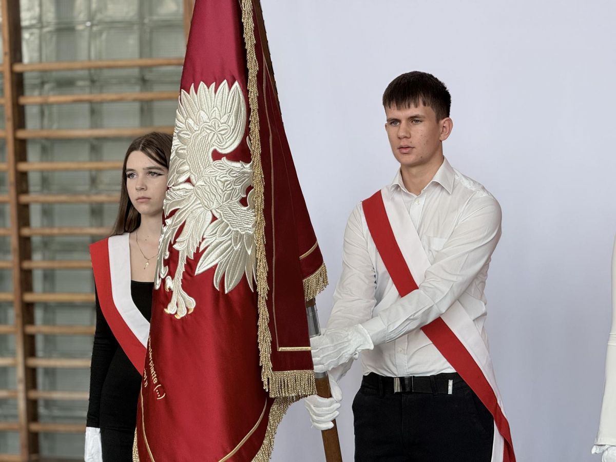 Szczególnie ważnym momentem była druga część apelu – ślubowanie uczniów klas pierwszych na Sztandar Szkoły. To symboliczne wydarzenie, które oznacza pełne włączenie nowych uczniów do społeczności ZSOiZ. Akt ślubowania przyjęła pani Dyrektor. Na zakończenie uroczystości Dyrekcja złożyła serdeczne życzenia wszystkim chłopcom z okazji Dnia Chłopaka, co wprowadziło do podniosłej atmosfery także radosny i ciepły akcent. Całość wydarzenia dopełniła piękna oprawa muzyczna przygotowana przez panią Barbarę Lendzian, która sprawiła, że apel był nie tylko lekcją historii i patriotyzmu, ale także artystycznym przeżyciem.