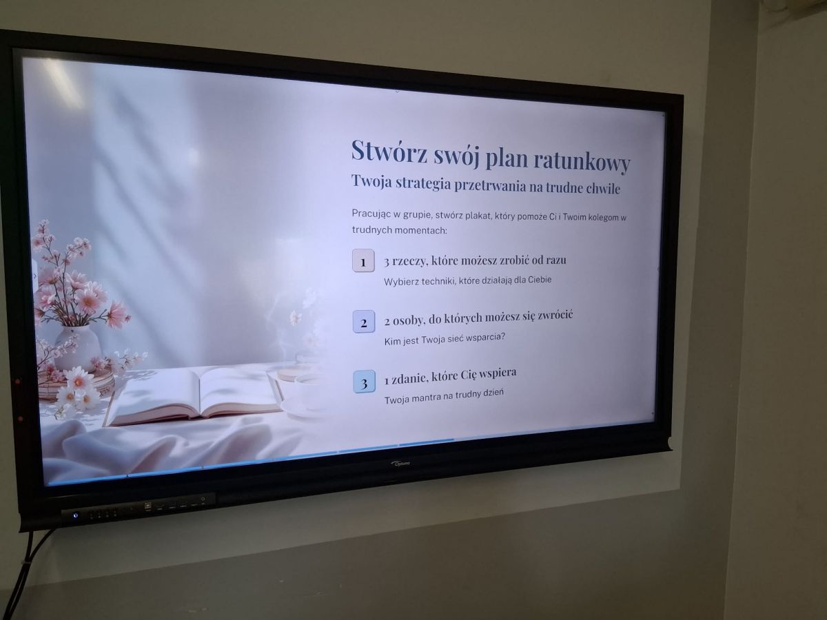 Podczas zajęć młodzież pracowała nad tworzeniem własnego „planu przetrwania na trudny dzień”, który może pomóc w sytuacjach obniżonego nastroju lub stresu. Wybrane osoby przygotowały również własne „pudełka ratunkowe” – zestawy przedmiotów i inspiracji wspierających w radzeniu sobie z kryzysami.