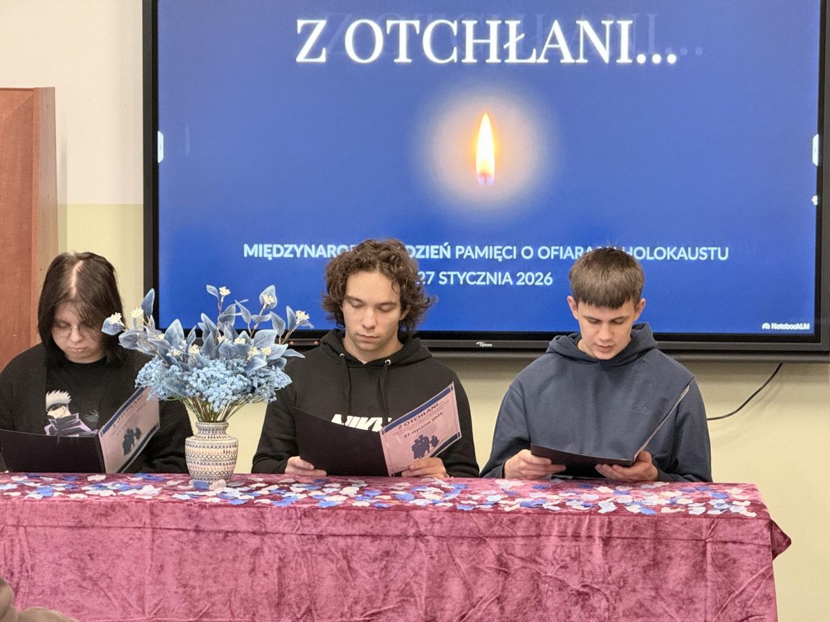 Obchody Międzynarodowego Dnia Pamięci o Ofiarach Holokaustu w ZSOiZ w Bolesławcu nie były jedynie lekcją historii. Były ważnym doświadczeniem wychowawczym, przypominającym, jak łatwo może dojść do tragedii, gdy zabraknie empatii, dialogu i szacunku dla drugiego człowieka. Hasło „Z otchłani” wybrzmiało jako przestroga, ale i wezwanie – by pamiętać, reagować i nie pozostawać obojętnym.